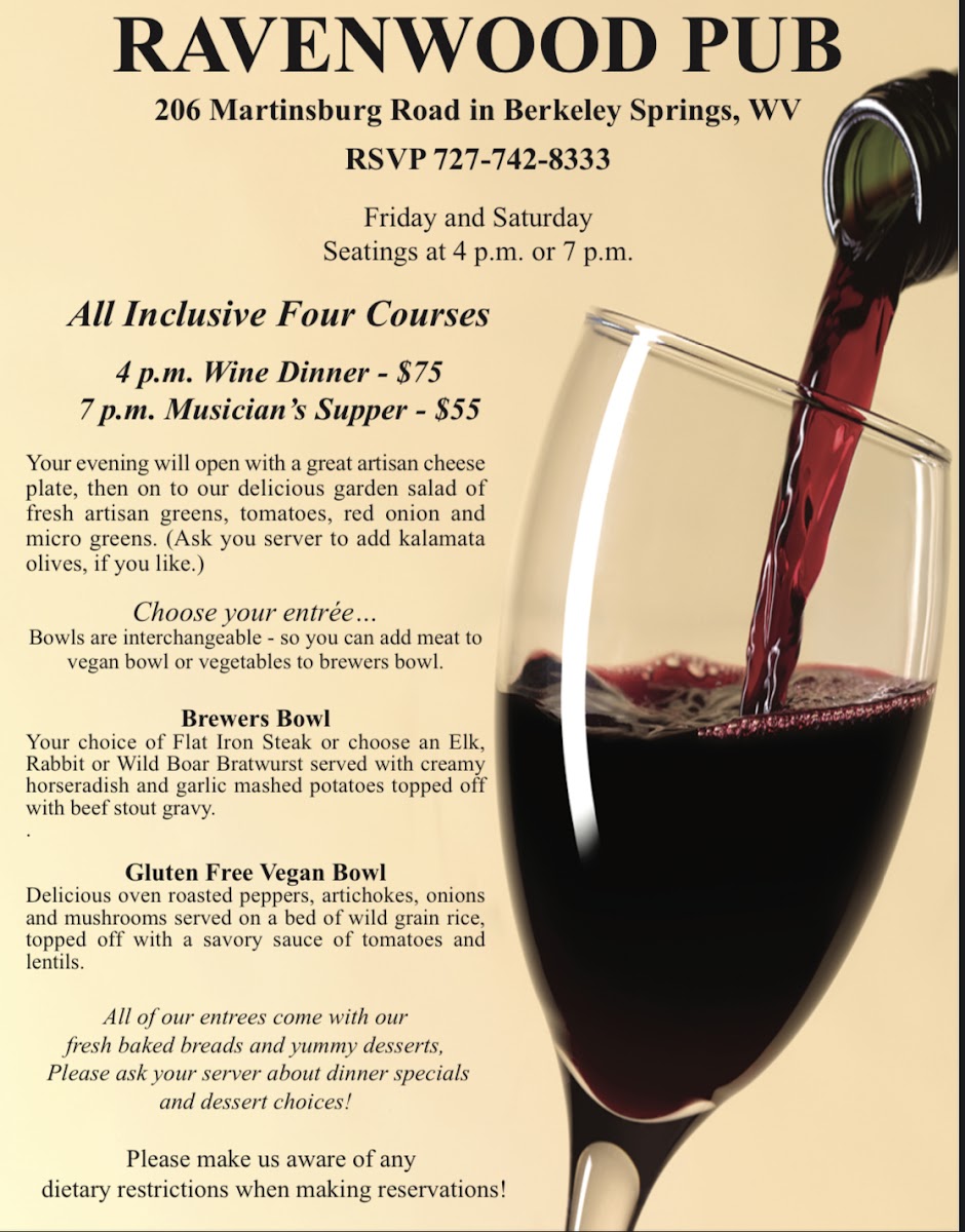 Located in the heart of Berkeley Springs, West Virginia, Ravenwood Pub offers a cozy yet vibrant atmosphere perfect for any occasion. Whether you’re craving a hearty meal or just looking to unwind with a cold drink, the Ravenwood Pub Menu has something to satisfy every appetite. From savory pub classics to creative specials, the menu is filled with comforting flavors made from fresh, local ingredients. Enjoy mouthwatering burgers, sizzling steaks, and a variety of appetizers that are perfect for sharing with friends. With a laid-back vibe and friendly service, it’s the perfect spot to enjoy a great meal in a welcoming setting. Whether you're a local or just passing through, Ravenwood Pub offers an experience that keeps guests coming back for more.